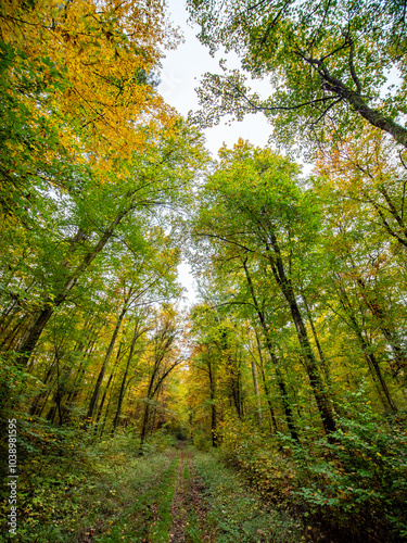 Obraz premium Waldweg durch den herbstlichen Wald