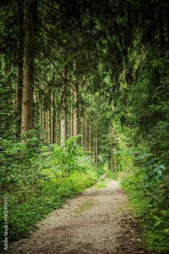 Fototapeta premium Waldweg - Forstweg mit großen Bäumen