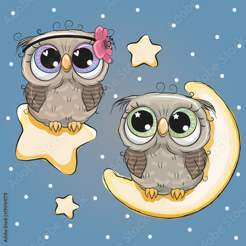 Fototapeta premium Walentynkowa karta z kochankami sów