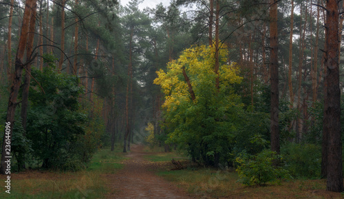 © Mykhailo, Fototapeta premium walk in the autumn forest. autumn colors. autumn fogs. melancholy.