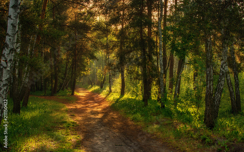 © Mykhailo, Obraz premium Walk in the forest. Morning. Sun rays. Landscape.