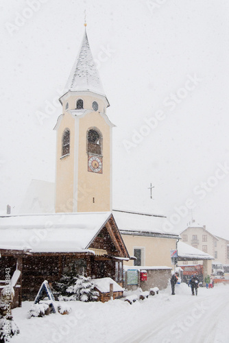 © Nicola Simeoni, Fototapeta premium Walk in the village under a heavy snowfall