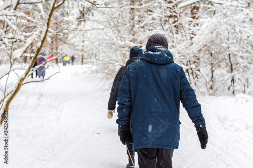 Naklejka premium Walk in the winter snow-covered wood. Beautiful winter landscape
