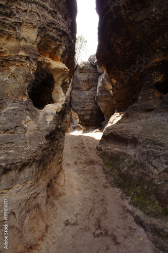 © stonefy, Obraz premium Walk way between grey and brown rocks.