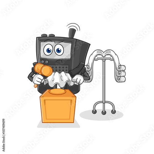 Fototapeta premium walkie talkie judge holds gavel. character vector