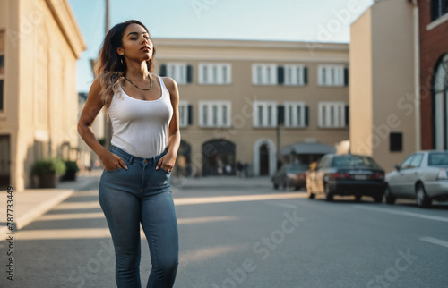 Fototapeta premium walking alone in the small town and strolling around, depressed and worried, walking without motivation, stressed and problems and worried,, bored and annoyed, age 30, walking thoughtfully