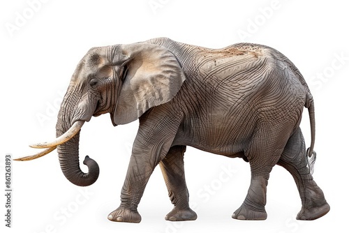 © Tisha, Fototapeta premium walking big african Elephant isolated on white background, graphic object
