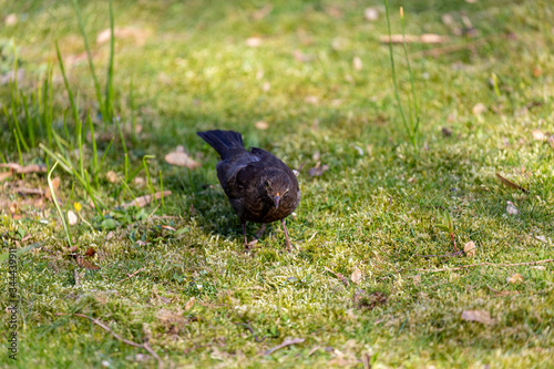 Obraz premium Walking black bird in park