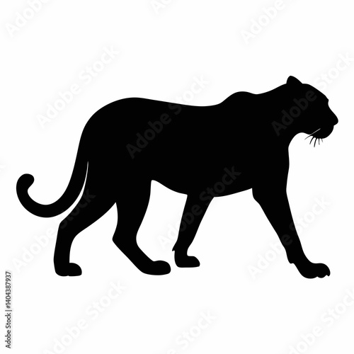 Obraz premium Walking Black Panther Silhouette On White Background Vector Illustration Graphic