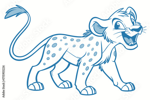 © Dipta, Fototapeta premium Walking Cartoon Cub with Spot Pattern on White Background