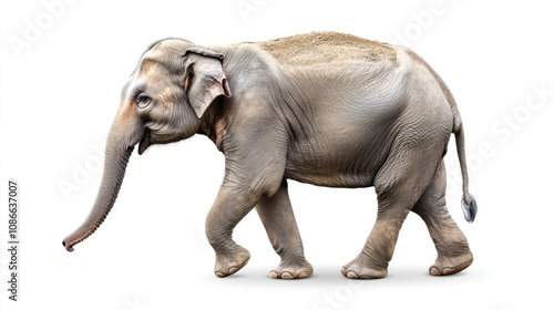 © Horsi, Obraz premium Walking Elephant on White Background