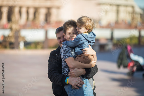 © Maria, Fototapeta premium walking family with two children in Akshardham temple in Robbinsville, New Jersey, largest Hindu temple in the world in terms of acreage.
