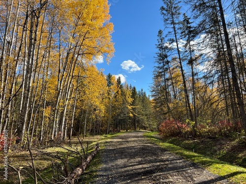 © m, Obraz premium Walking Hiking Outdoors on a Trail in Autumn Fall