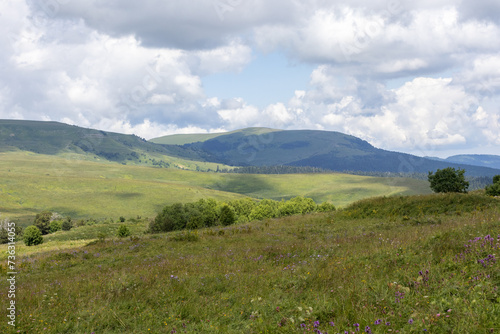 © NAIL BATTALOV, Fototapeta premium Walking in the highlands in a natural park, during the flowering of plants and warm weather.