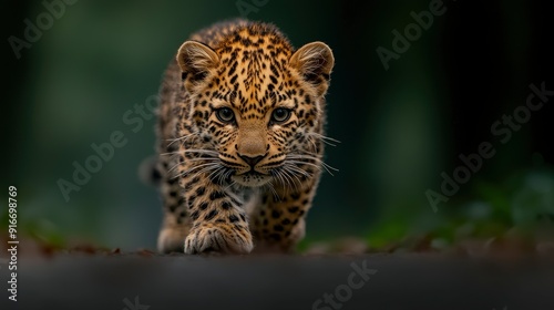 © AICraft, Fototapeta premium Walking Leopard On A Forest Road, Stealthy