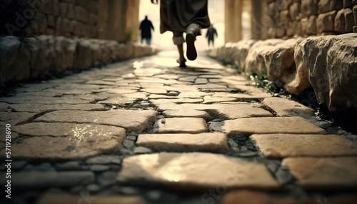 Obraz premium Walking on a Stone City Street Horizon generated by AI