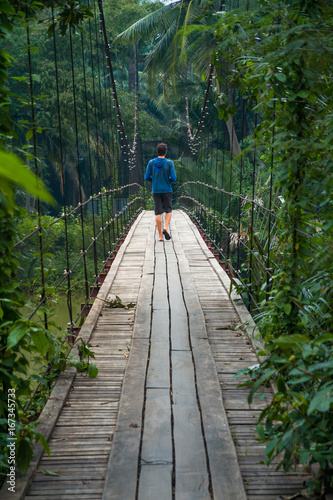 © steph photographies, Fototapeta premium Walking on a suspension bridge in asia