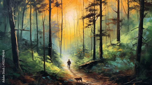 © 여진 양, Obraz premium Walking on the mountain path on a sunny day