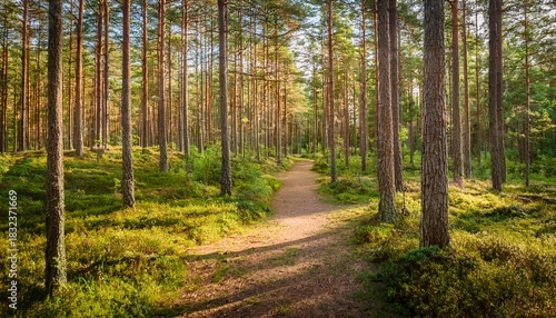© Julio, Obraz premium Walking Path In A Beautiful Pine Forest In Sweden