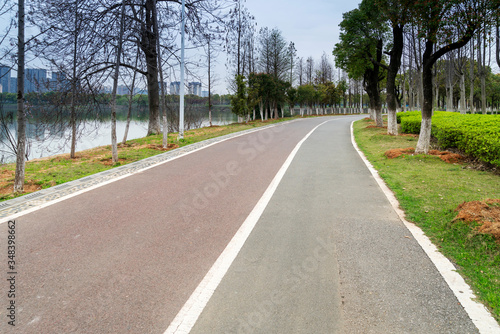 Fototapeta premium Walking path in forest. Walking path in woods