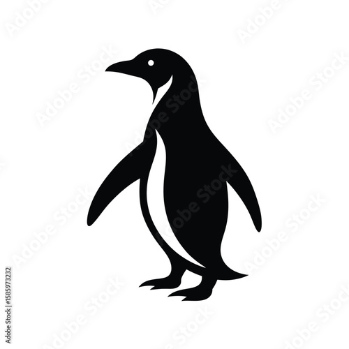 Naklejka premium Walking penguin silhouette in side view representing arctic wildlife with...