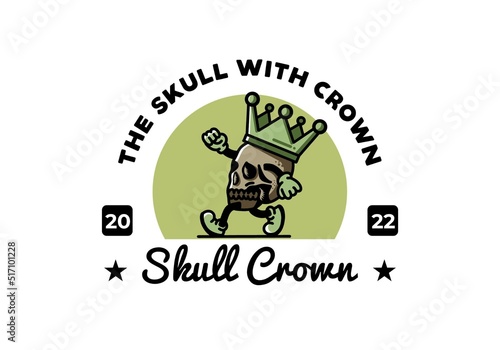 © Adipra, Fototapeta premium Walking skull illustration wearing a big crown