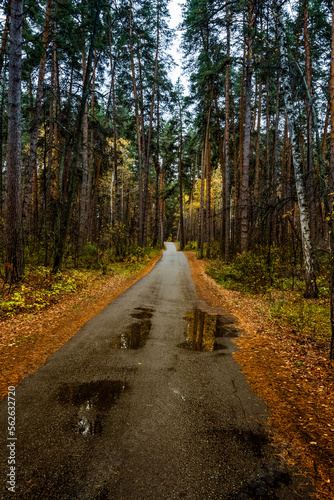 Naklejka premium Walking through the autumn forest on a quiet day.