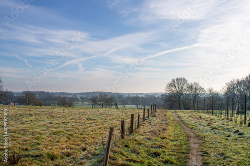 © Rezona, Fototapeta premium Walking trail in Dutch town of Markelo, Twente, at a frosty winter morning