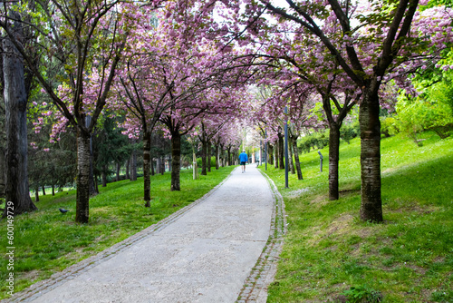 Fototapeta premium walking under the sakura blooming