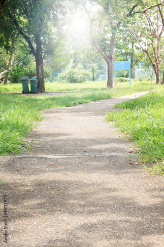 Obraz premium walklway,exercise label,sun ,tree in park.