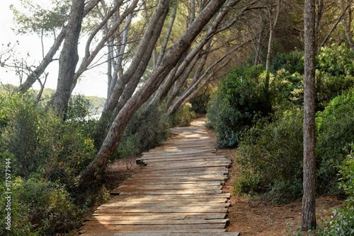 Obraz premium Walkway made of planks in the forest