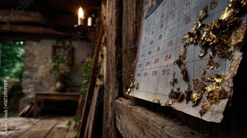 © Dmitry P, Obraz premium Wall calendar with torn pages, passing time, aging concept