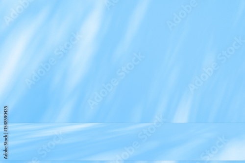 © Photo Sesaon, Fototapeta premium Wall interior background, studio and backdrops show products.with shadow from window color white and blue background for text insertion and presentation product