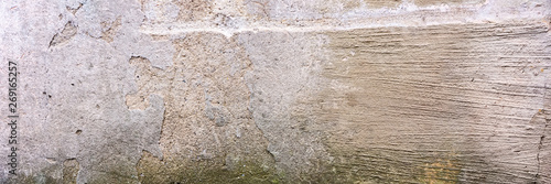 Fototapeta premium wall is covered with old crumbling cement colored plaster and covered with...