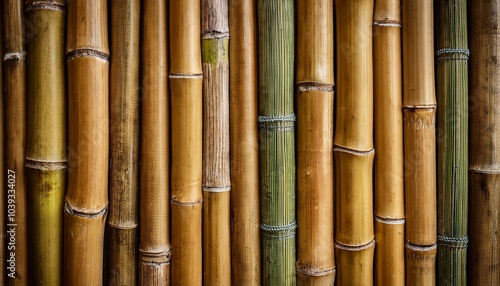 © Rindi, Fototapeta premium Wall made of natural bamboo stems