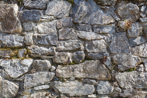 Obraz premium wall made of rocks. old grey stone wall on sunny day. natural background