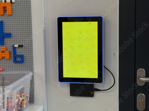 Fototapeta premium Wall-mounted tablet kiosk with yellow display