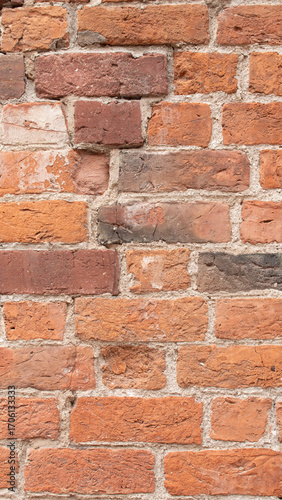 © Javier, Obraz premium Wall of rectangular orange-coloured bricks