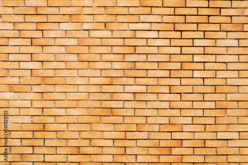 Fototapeta premium Wall of small orange bricks. Horizontal image. Space for advertising.