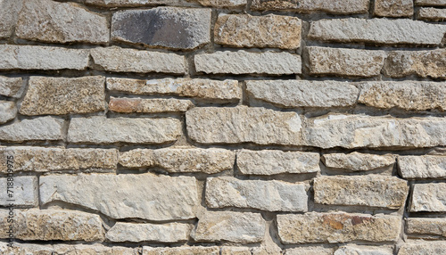 © Uuganbayar, Obraz premium wall of stones as a texture for background; gray beige stone bricks close-up
