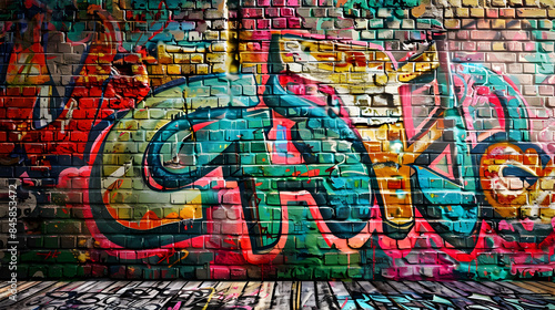 © ConceptStudio, Fototapeta premium Wall with bright graffiti
