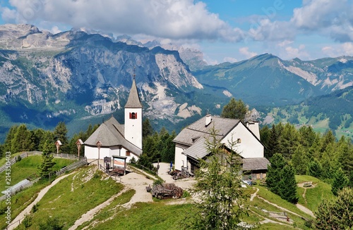 © Franz Gerhard, Fototapeta premium Wallfahrtskirche Heiligkreuz, Alta Badia, Südtirol