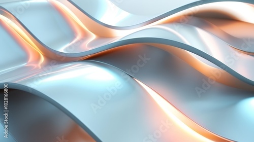 © AItist, Obraz premium Wallpaper An elegant abstract background featuring smooth, flowing metallic waves with glowing edges