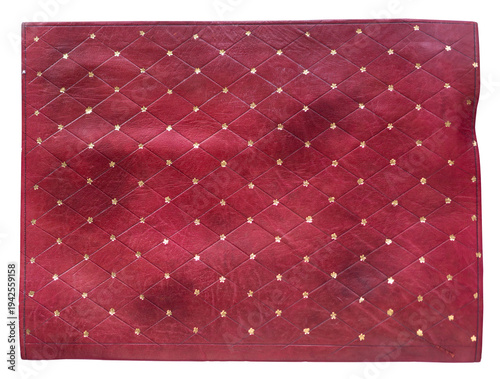 © macondos, Obraz premium Wallpaper background of red quilted leather texture with golden pattern and decorative studs top view