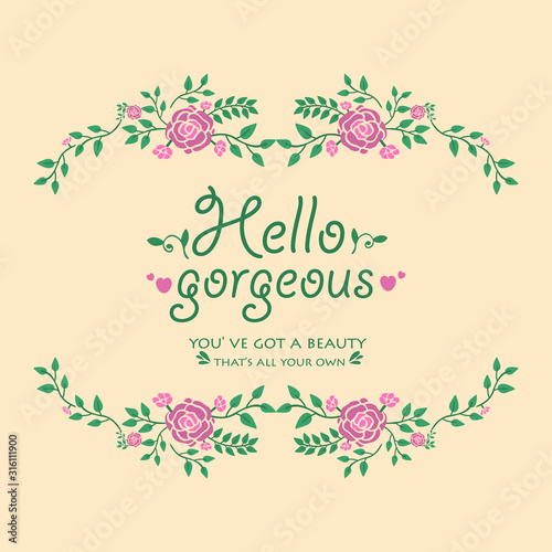 Obraz premium Wallpaper design for hello gorgeous card, with elegant pink floral frame decoration. Vector