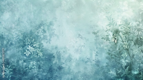 Fototapeta premium Wallpaper featuring misty gradients blue and green hues and floral overlays backdrop