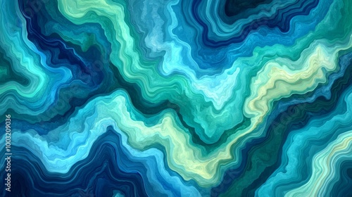 Obraz premium Wallpaper in ocean blue and mint green with an abstract artificial watercolor...