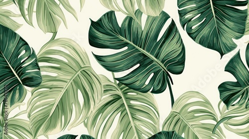 Fototapeta premium Wallpaper made of palm leaves tropical leaves pattern illustration