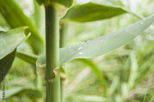© waltermorselli, Naklejka premium Wallpaper morning dew macro green bamboo leaf blur background