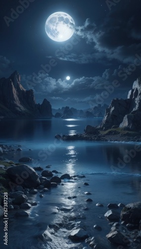 © Karolina, Naklejka premium Wallpaper mountainous landscape illuminated by moonlight